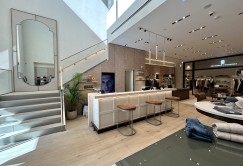 Yenilikçi bir mağaza anlayışı ile biçimlendirilen Brunello Cucinelli; yumuşak renk tonları, jüt paneller, ahşap detaylar ve metal vurgularla zenginleştirilip oturma alanları, doğal ışık kullanımı ve gizli aydınlatmalarla da desteklenerek hem görsel hem de işlevsel bir bütünlüğe kavuşturuldu. Galeri boşluğundan süzülen doğal ışık, aplik ve tavan aydınlatmaları ile desteklenirken aksesuar bölümü gibi özel sergileme alanlarında kullanılan gizli ışık detayları, mekana zarif ve sofistike bir atmosfer kazandırdı. Böylece kullanılan malzeme ve mobilyalar, yalnızca estetik değil aynı zamanda akustik ve konfor açısından da katkı sağladı.