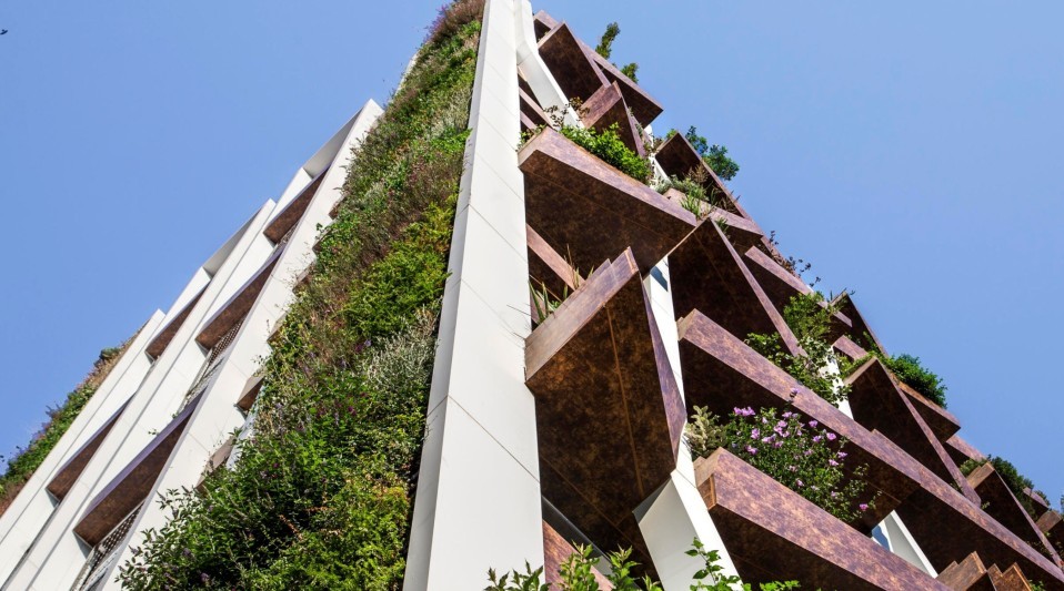 Mental Design Works tarafından hayat ağacının dallarından ilham alınarak tasarlanan cephe strüktürü, binanın ana mimari karakterini oluşturuyor. Bu strüktür sayesinde yeşil doku yalnızca zeminle sınırlı kalmayarak üçüncü boyuta taşınıyor ve yapıyı saran, yaşayan bir kabuğa dönüşüyor. Yapının oturduğu yeşil zemin üst kotlara taşınarak sosyal bir çatı alanı oluşturuluyor ve önündeki park alanı da düzenlenerek çevresiyle bütünleşen kamusal bir alan elde ediliyor. Cephede yer alan 209 ağaç ve 20.180 bitki, 3.121 çalı ve yer örtücü bitki sayesinde Greenox, yılda 5.657,5 m³ oksijen üretiyor. Standart yapılara kıyasla atmosfere yıllık yaklaşık 7.4 ton daha az karbon salımı sağlarken, yüzde 40’a varan su ve enerji tasarrufu ile hem çevreye hem de kullanıcı ekonomisine katkı sunuyor. Bitkiler karbondioksit ve toz partiküllerini emerken, cephede ısı ve nem yalıtımı sağlıyor. Kış aylarında gün ışığının iç mekanlara ulaşmasına olanak tanırken, yaz aylarında aşırı ısı kazanımını engelliyor. Sulama ve gübreleme süreçlerinin otomasyonla yönetilmesi, bu yaşayan sistemin sürdürülebilirliğini mümkün kılıyor.